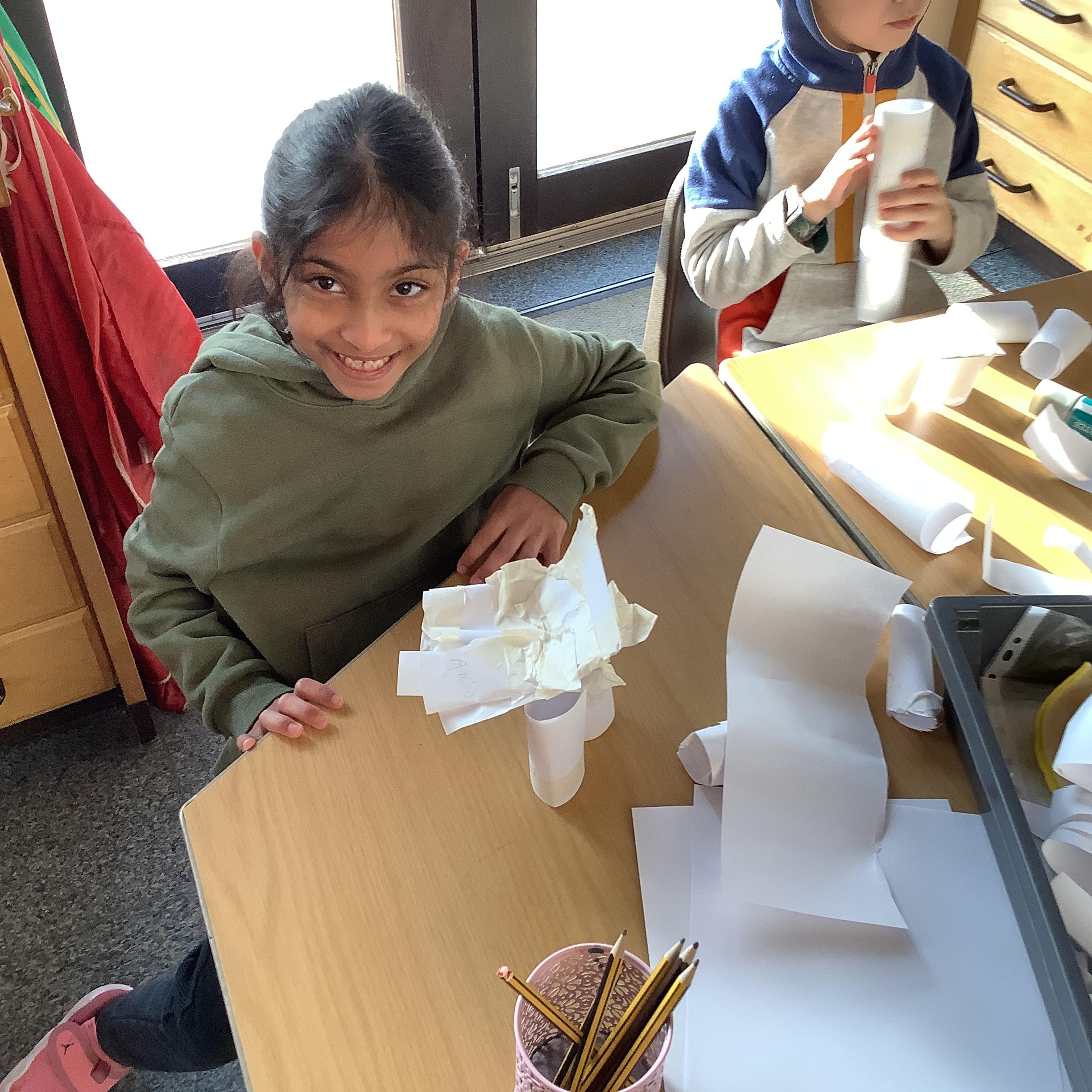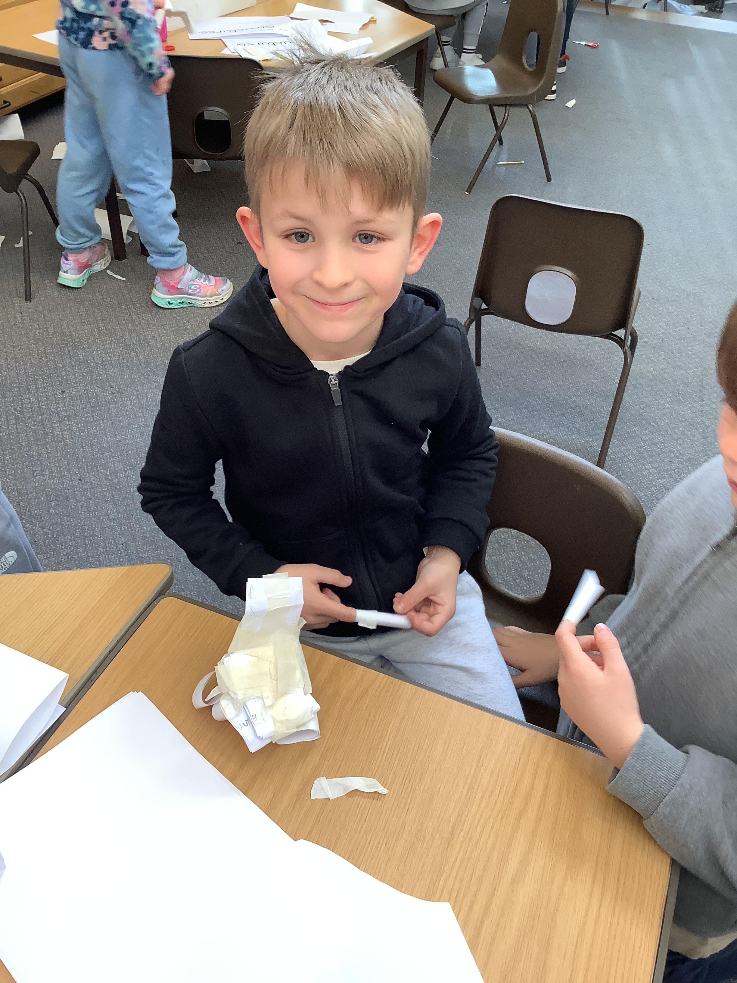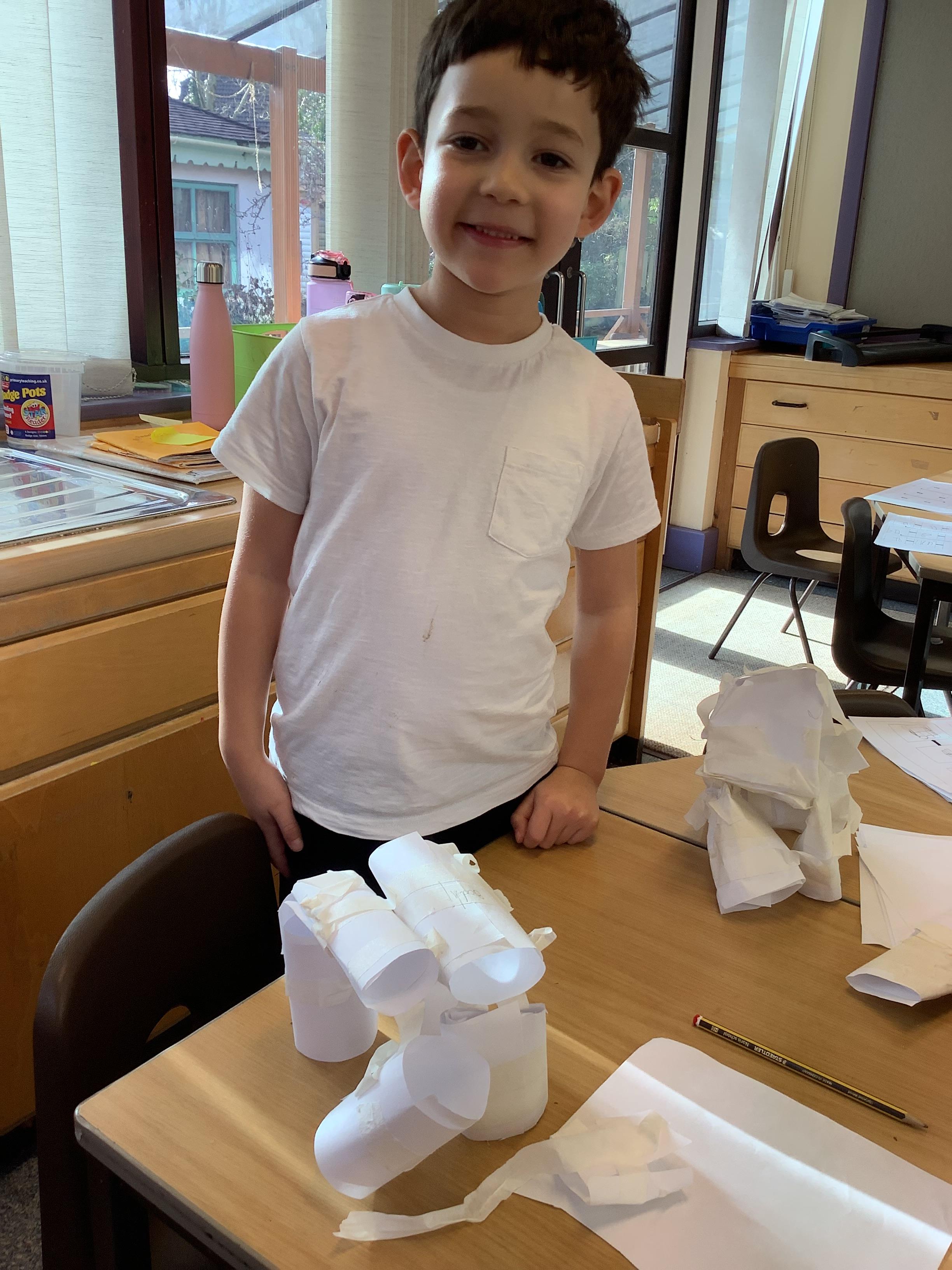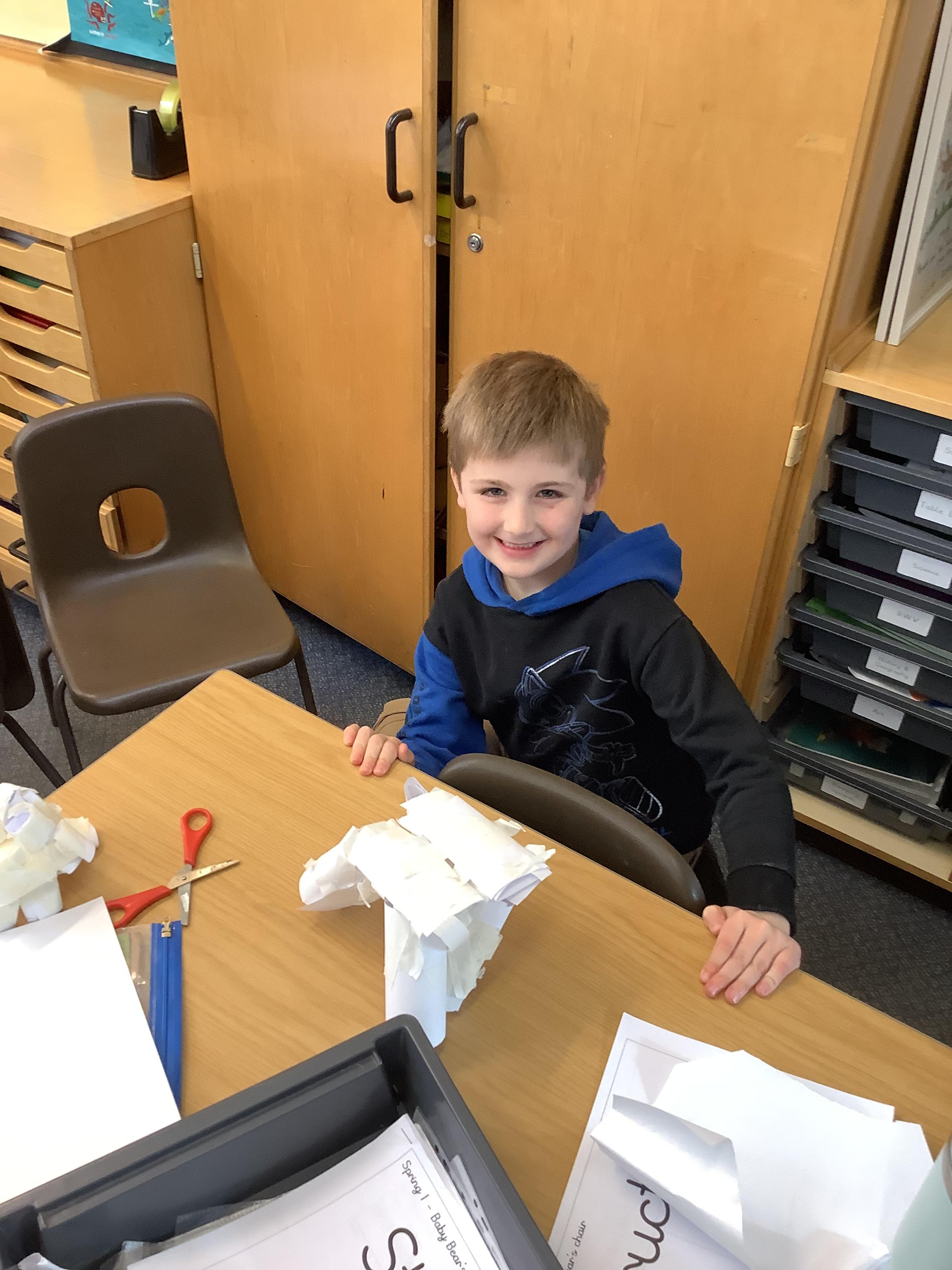 During their structures unit, Year 2 learned about what makes a strong and stable structure. The children explored making paper cylinder tubes, to build a strong and stable 3D chair structure, to seat Baby Bear, based on the story, 'Goldilocks and the 3 Bears'.